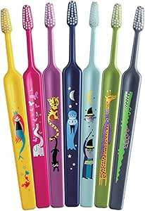 ※【デザインはランダムでお届けします】 密でコシのあるフィラメントが効率よくプラークを除去し、爽快なブラッシングを提供します。 また、独特の台形状ブラシヘッドと、自然に最良のグリップを得られるハンドルによって効果的なブラッシングができます。また、毛先にはラウンド加工が施されおり、快適なブラッシングを可能にします。 デザインが可愛くお子さんにも大人にもおすすめです。